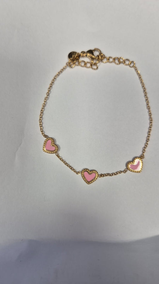 Armbandje, 3 roze hartjes