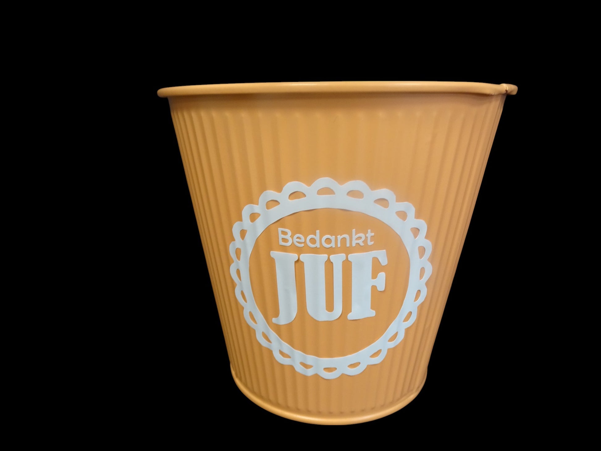 Op zoek naar een origineel cadeau voor de juf of meester? Verras hen met deze leuke metalen bloempot – perfect als bedankje aan het einde van het schooljaar of voor de Dag van de Leerkracht!