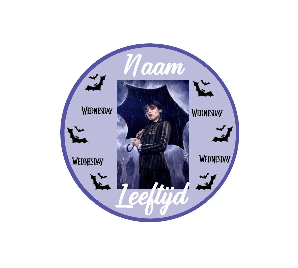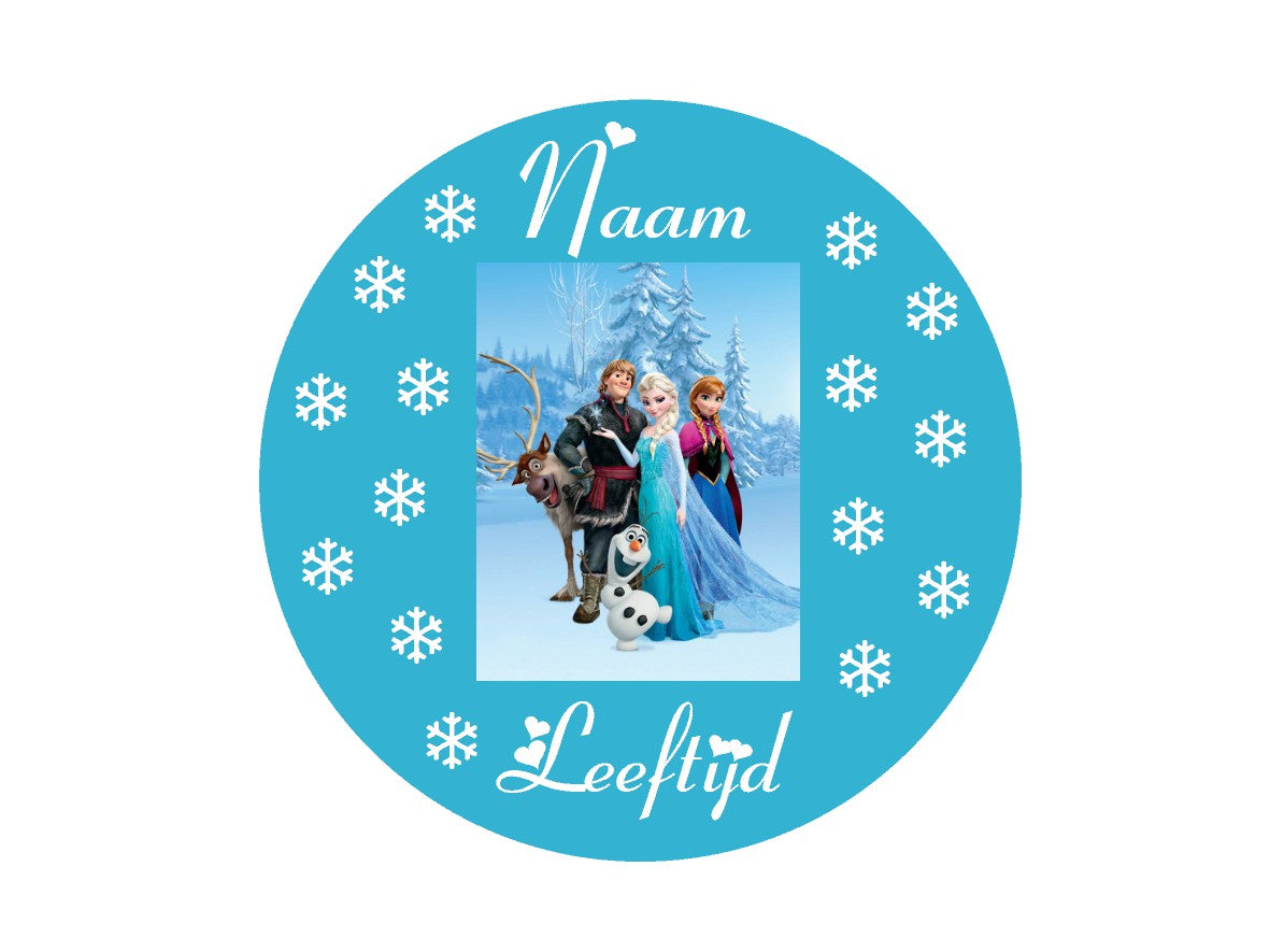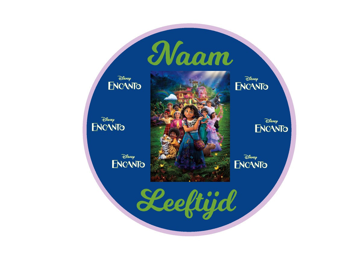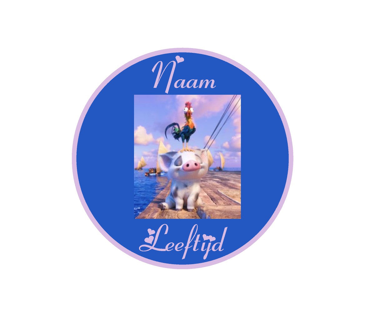 Sticker in Thema met naam en leeftijd van de uitdeler