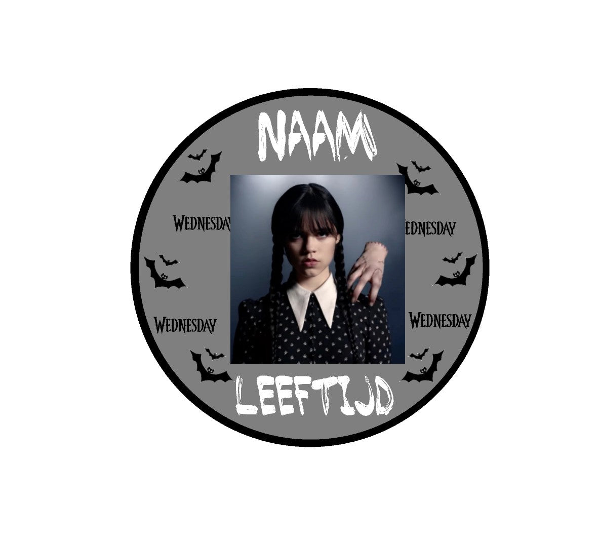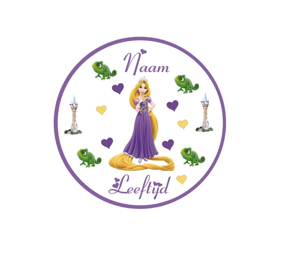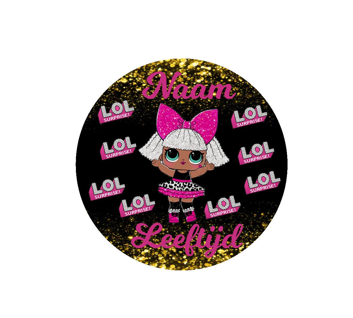 Sticker in Thema met naam en leeftijd van de uitdeler
